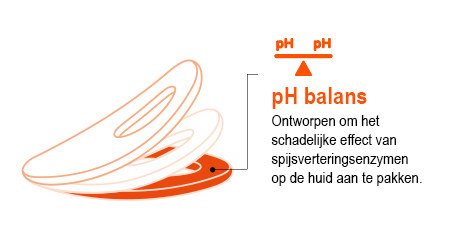 De pH-buffer van de Dansac TRE-ring zorgt ervoor dat de pH van de normale, gezonde huid in stand wordt gehouden en dat spijsverteringsenzymen minder kans krijgen om actief te worden.